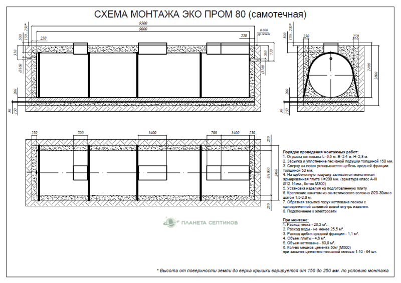 - Септики на 9,5 кубов (9,5 м3/сут)
