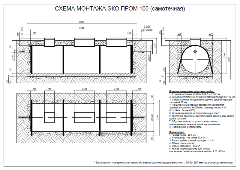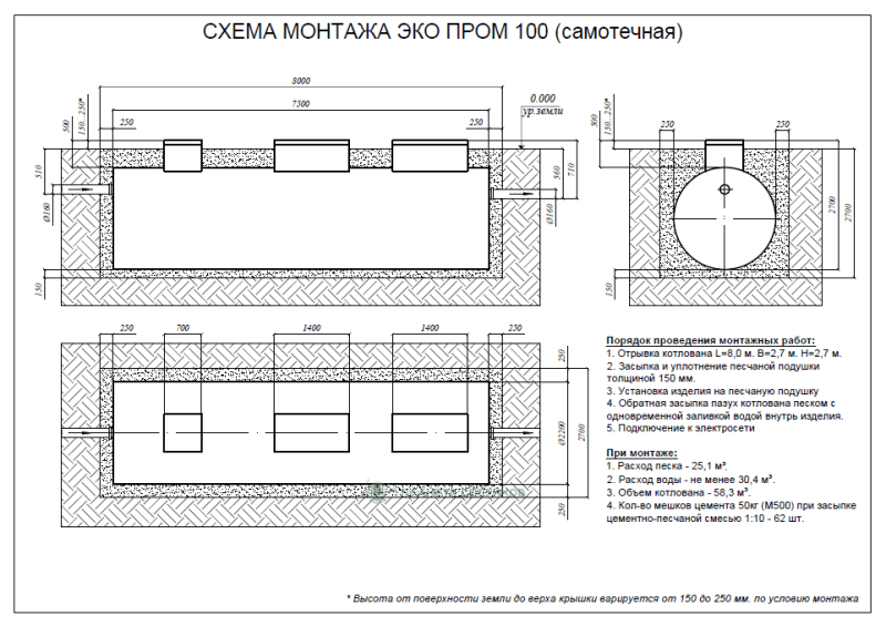 Стандартный монтаж- Копка котлована с подготовкой для УОСВ, его установкой и обратной засыпкой- Песчаная подушка- Копка траншеи для прокладки труб с обратной засыпкой, с материалом – 4 м до станции, 4 м после станции (в любой пропорции)- Врезка труб в станцию, с их пайкой (если нет с завода) – 2 шт,- Прокладка электрического кабеля в пнд трубе – 10 м- Пуско – наладочные работы, тестирование станции- Подключение электрооборудования (компрессоров, насосов)- Консультация по пользованию ЛОС | от 20 000 ₽ |