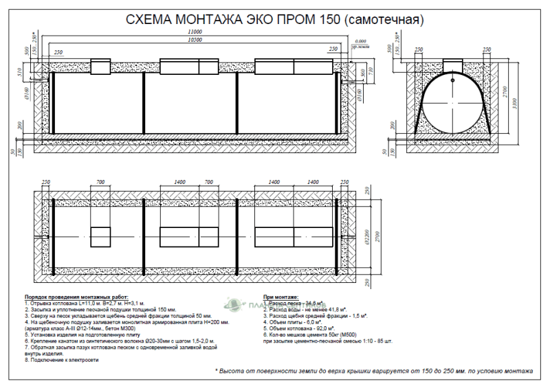 Стандартный монтаж- Копка котлована с подготовкой для УОСВ, его установкой и обратной засыпкой- Песчаная подушка- Копка траншеи для прокладки труб с обратной засыпкой, с материалом – 4 м до станции, 4 м после станции (в любой пропорции)- Врезка труб в станцию, с их пайкой (если нет с завода) – 2 шт,- Прокладка электрического кабеля в пнд трубе – 10 м- Пуско – наладочные работы, тестирование станции- Подключение электрооборудования (компрессоров, насосов)- Консультация по пользованию ЛОС | от 20 000 ₽ |