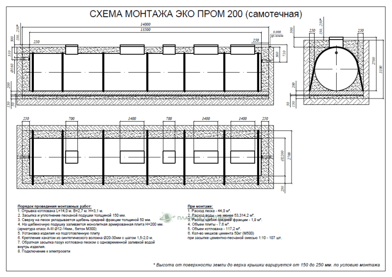 Стандартный монтаж- Копка котлована с подготовкой для УОСВ, его установкой и обратной засыпкой- Песчаная подушка- Копка траншеи для прокладки труб с обратной засыпкой, с материалом – 4 м до станции, 4 м после станции (в любой пропорции)- Врезка труб в станцию, с их пайкой (если нет с завода) – 2 шт,- Прокладка электрического кабеля в пнд трубе – 10 м- Пуско – наладочные работы, тестирование станции- Подключение электрооборудования (компрессоров, насосов)- Консультация по пользованию ЛОС | от 20 000 ₽ |