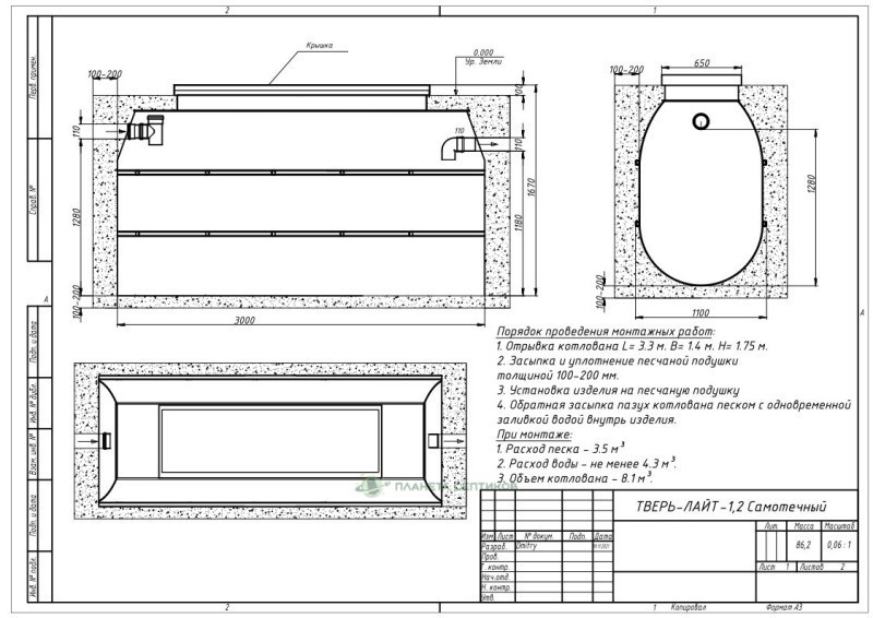 Цены на монтаж септик Септик Тверь Лайт 1,2