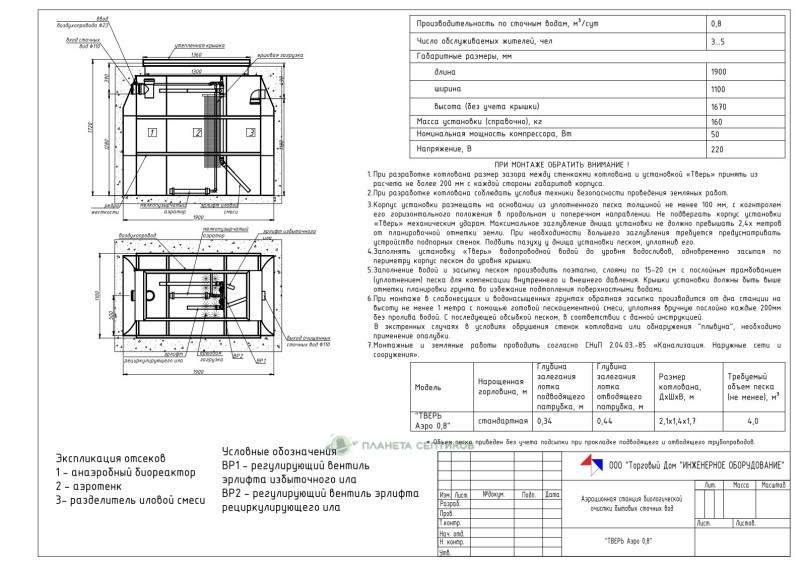 Цены на монтаж септик Септик Тверь Аэро 0,8