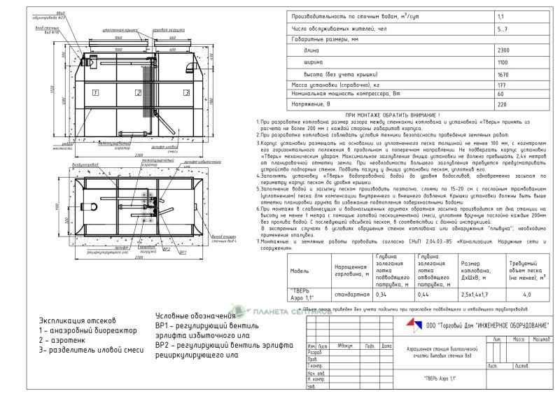 Цены на монтаж септик Септик Тверь Аэро 1,1