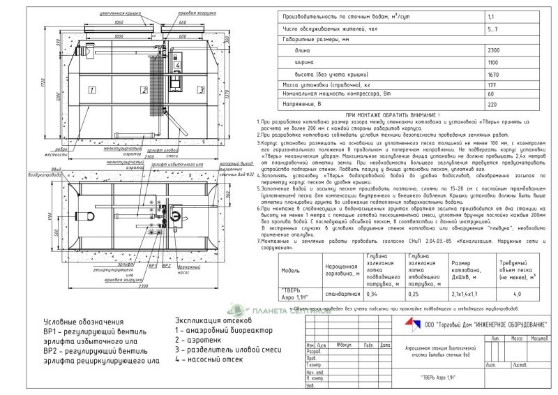 Цены на монтаж септик Септик Тверь Аэро 1,1Н