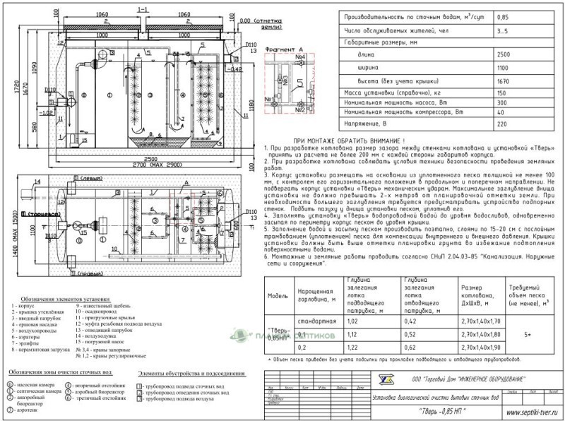 - Септики на 8,5 кубов (8,5 м3/сут)