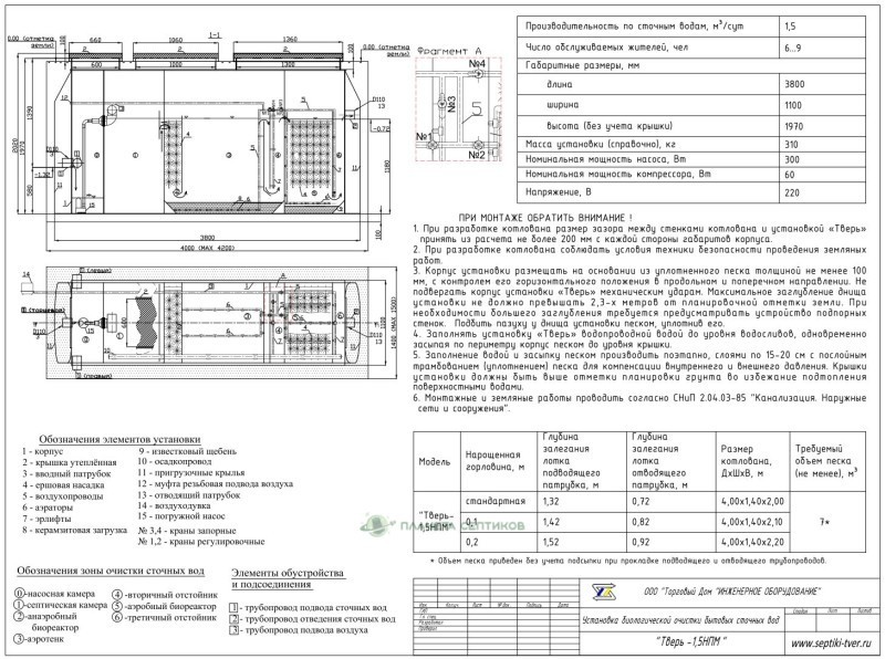 Цены на монтаж септик Септик Тверь 1,5НПМ