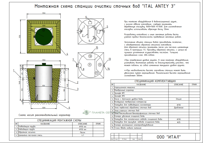 Стандартный монтаж- Копка котлована с подготовкой для УОСВ, его установкой и обратной засыпкой- Песчаная подушка- Копка траншеи для прокладки труб с обратной засыпкой, с материалом – 4 м до станции, 4 м после станции (в любой пропорции)- Врезка труб в станцию, с их пайкой (если нет с завода) – 2 шт,- Прокладка электрического кабеля в пнд трубе – 10 м- Пуско – наладочные работы, тестирование станции- Подключение электрооборудования (компрессоров, насосов)- Консультация по пользованию ЛОС | от 20 000 ₽ |