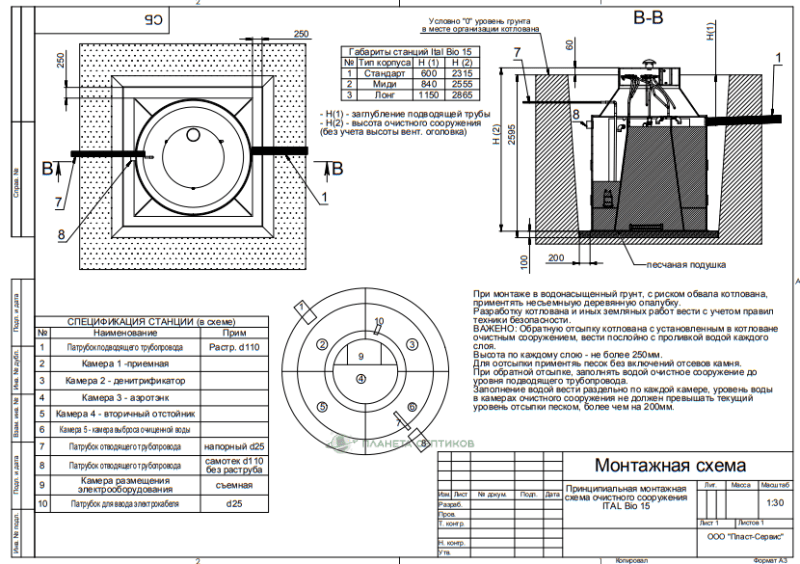 Стандартный монтаж- Копка котлована с подготовкой для УОСВ, его установкой и обратной засыпкой- Песчаная подушка- Копка траншеи для прокладки труб с обратной засыпкой, с материалом – 4 м до станции, 4 м после станции (в любой пропорции)- Врезка труб в станцию, с их пайкой (если нет с завода) – 2 шт,- Прокладка электрического кабеля в пнд трубе – 10 м- Пуско – наладочные работы, тестирование станции- Подключение электрооборудования (компрессоров, насосов)- Консультация по пользованию ЛОС | от 20 000 ₽ |