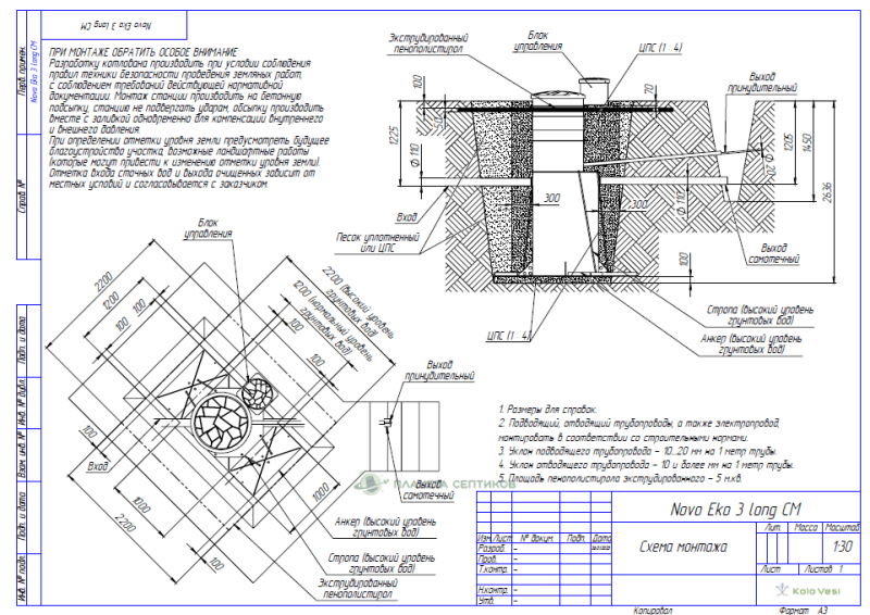 Цены на монтаж септик Септик Ново Эко 3 Лонг