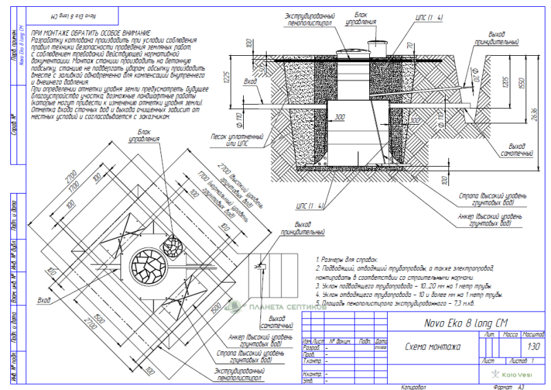 Цены на монтаж септик Септик Ново Эко 8 Лонг
