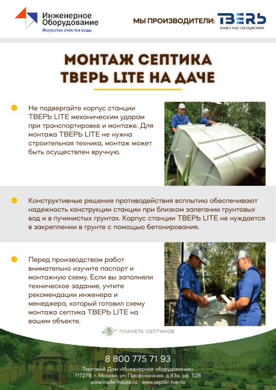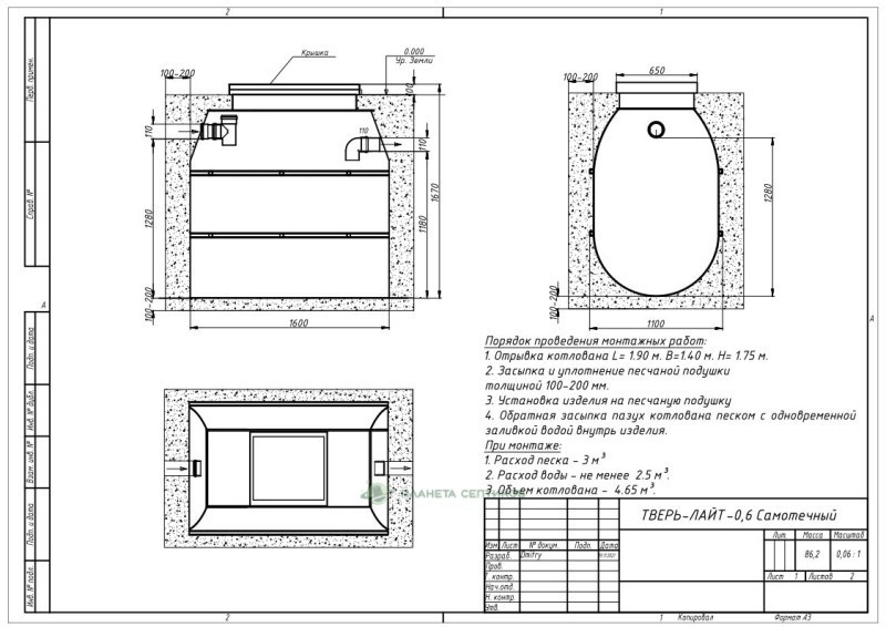 Цены на монтаж септик Септик Тверь Лайт 0,6Н