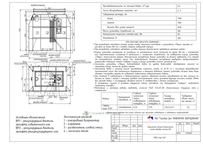Цены на монтаж септик Септик Тверь Аэро 0,5Н