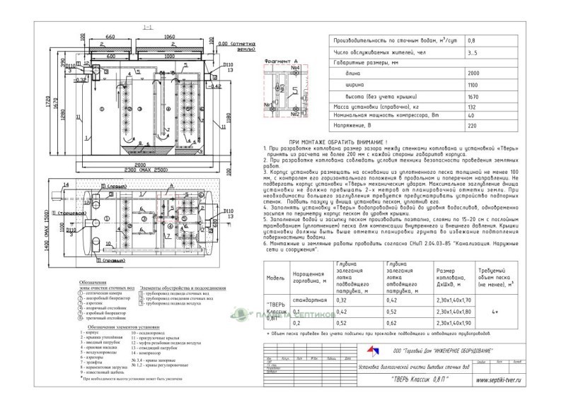 - Септики на 9,5 кубов (9,5 м3/сут)