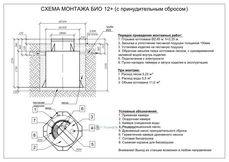 Цены на монтаж септик Септик Евролос БИО 12+(принудительный)