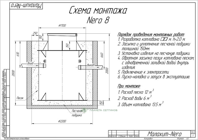 Цены на монтаж септик Септик МАЛАХИТ NERO 8