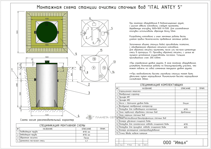 Цены на монтаж септик Септик Итал Антей 5