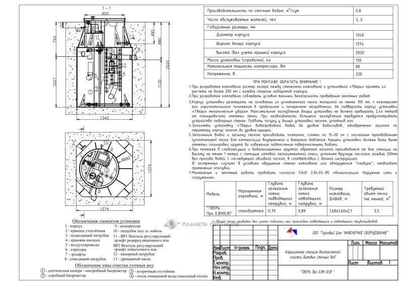 Цены на монтаж септик Септик Тверь Про 0,8Н