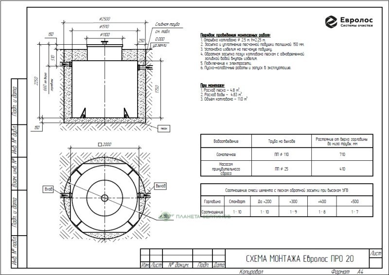 Якорение септика, станции на раствор ЦПС (если требуется) | 4 000 ₽ - 6 000 ₽ |
