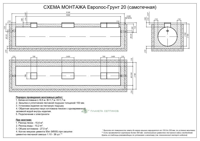 Цены на монтаж септик Септик Евролос ГРУНТ 20