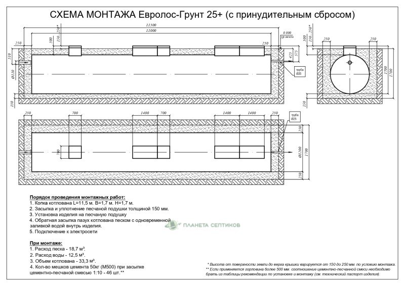 Цены на монтаж септик Септик Евролос ГРУНТ 25+(принудительный)