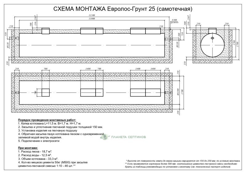 Цены на монтаж септик Септик Евролос ГРУНТ 25