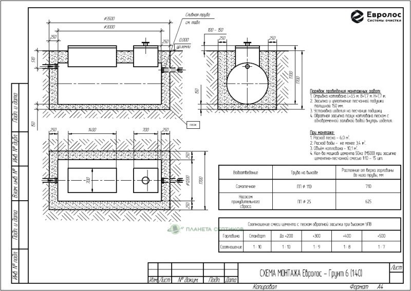 Цены на монтаж септик Септик Евролос ГРУНТ 6