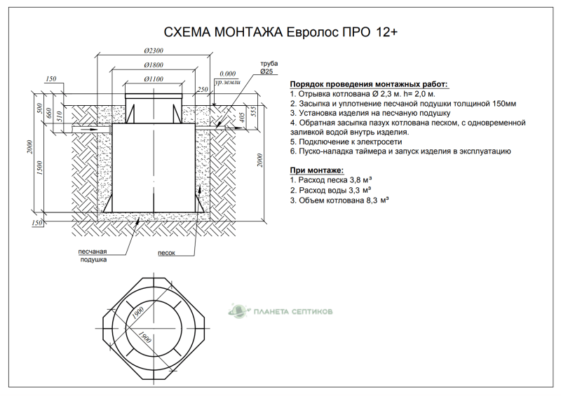 Цены на монтаж септик Септик Евролос ПРО 12+(принудительный)