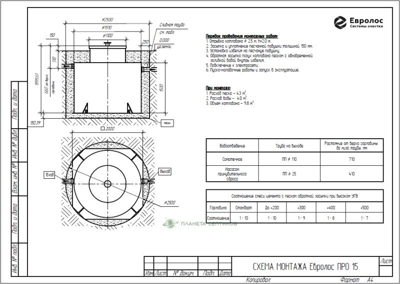 Цены на монтаж септик Септик Евролос ПРО 15