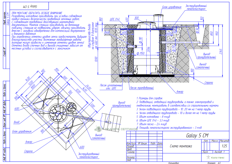 Якорение септика, станции на раствор ЦПС (если требуется) | 4 000 ₽ - 6 000 ₽ |