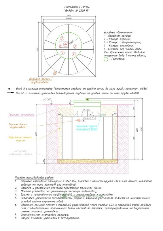 Стандартный монтаж- Копка котлована с подготовкой для УОСВ, его установкой и обратной засыпкой- Песчаная подушка- Копка траншеи для прокладки труб с обратной засыпкой, с материалом – 4 м до станции, 4 м после станции (в любой пропорции)- Врезка труб в станцию, с их пайкой (если нет с завода) – 2 шт,- Прокладка электрического кабеля в пнд трубе – 10 м- Пуско – наладочные работы, тестирование станции- Подключение электрооборудования (компрессоров, насосов)- Консультация по пользованию ЛОС | от 20 000 ₽ |
