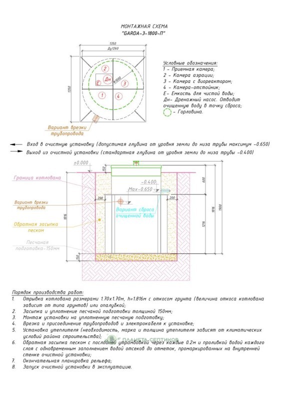 Цены на монтаж септик GARDA-3-1800-П