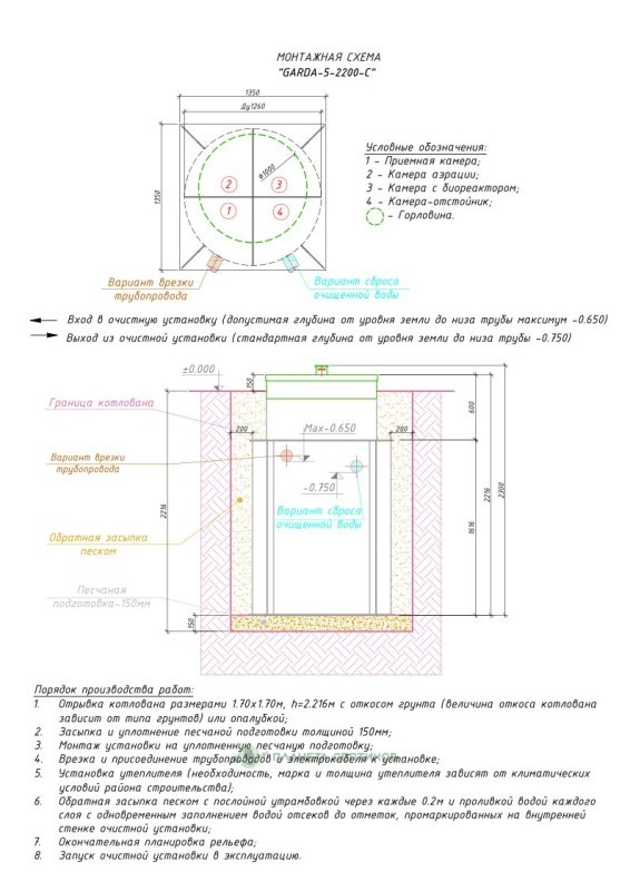 Стандартный монтаж- Копка котлована с подготовкой для УОСВ, его установкой и обратной засыпкой- Песчаная подушка- Копка траншеи для прокладки труб с обратной засыпкой, с материалом – 4 м до станции, 4 м после станции (в любой пропорции)- Врезка труб в станцию, с их пайкой (если нет с завода) – 2 шт,- Прокладка электрического кабеля в пнд трубе – 10 м- Пуско – наладочные работы, тестирование станции- Подключение электрооборудования (компрессоров, насосов)- Консультация по пользованию ЛОС | от 20 000 ₽ |