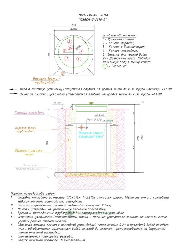 Цены на монтаж септик GARDA-5-2200-П