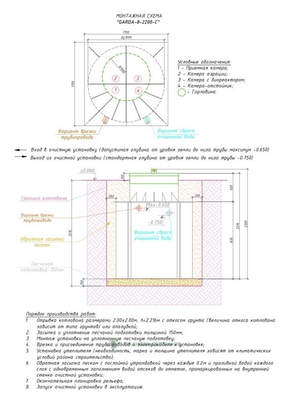 Стандартный монтаж- Копка котлована с подготовкой для УОСВ, его установкой и обратной засыпкой- Песчаная подушка- Копка траншеи для прокладки труб с обратной засыпкой, с материалом – 4 м до станции, 4 м после станции (в любой пропорции)- Врезка труб в станцию, с их пайкой (если нет с завода) – 2 шт,- Прокладка электрического кабеля в пнд трубе – 10 м- Пуско – наладочные работы, тестирование станции- Подключение электрооборудования (компрессоров, насосов)- Консультация по пользованию ЛОС | от 20 000 ₽ |