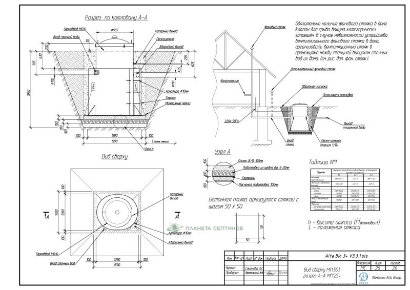 Цены на монтаж септик Септик Альта Био 3 +(принудительный)