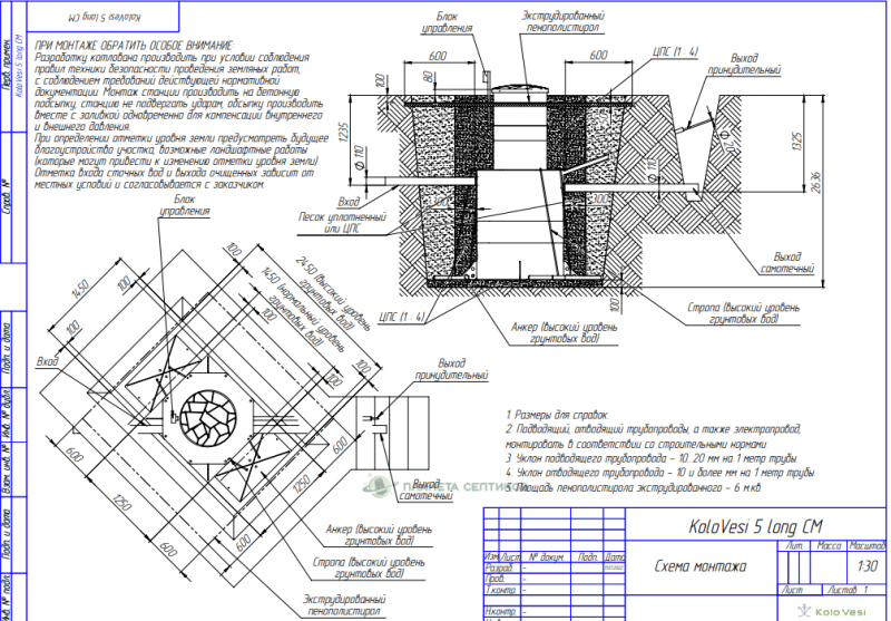 Цены на монтаж септик Септик КолоВеси 5 Лонг