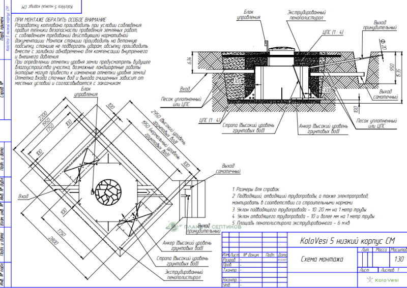 Якорение септика, станции на раствор ЦПС (если требуется) | 4 000 ₽ - 6 000 ₽ |