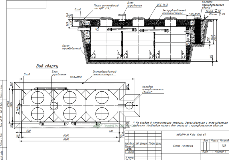 Стандартный монтаж- Копка котлована с подготовкой для УОСВ, его установкой и обратной засыпкой- Песчаная подушка- Копка траншеи для прокладки труб с обратной засыпкой, с материалом – 4 м до станции, 4 м после станции (в любой пропорции)- Врезка труб в станцию, с их пайкой (если нет с завода) – 2 шт,- Прокладка электрического кабеля в пнд трубе – 10 м- Пуско – наладочные работы, тестирование станции- Подключение электрооборудования (компрессоров, насосов)- Консультация по пользованию ЛОС | от 20 000 ₽ |
