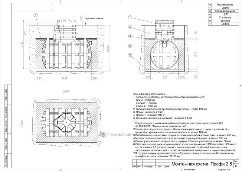 Цены на монтаж септик Септик Термит Профи 2,5 S