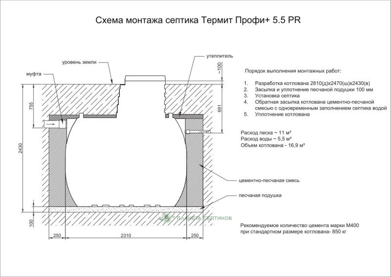 Цены на монтаж септик Септик Термит Профи 5,5 PR