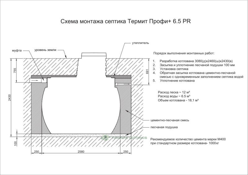 Цены на монтаж септик Септик Термит Профи 6,5 PR