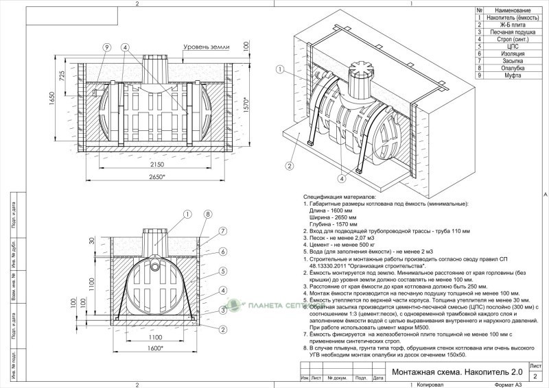 Цены на монтаж септик Септик Термит Накопитель 2,0