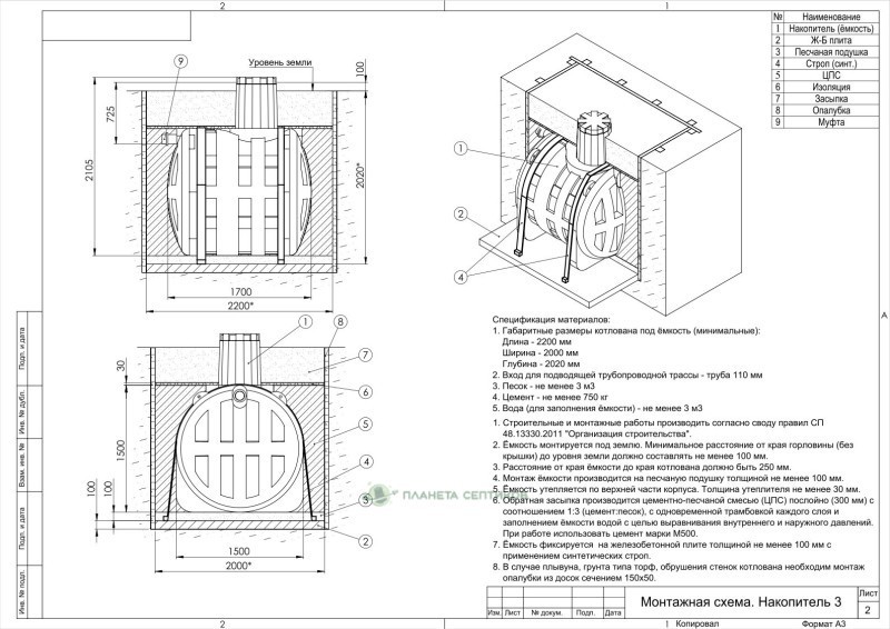 Цены на монтаж септик Септик Термит Накопитель 3,0