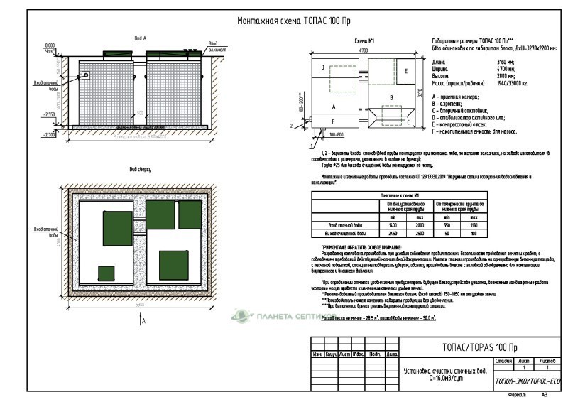 Цены на монтаж септик Септик Топас 100 (принудительный)