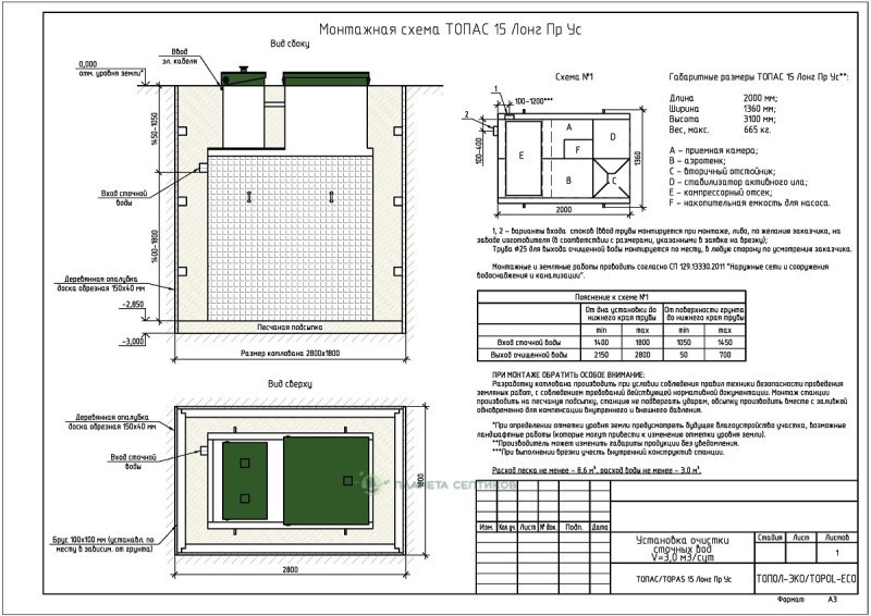 Цены на монтаж септик Септик Топас 15 Лонг УС пр.