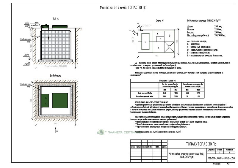 Цены на монтаж септик Септик Топас 30 (принудительный)