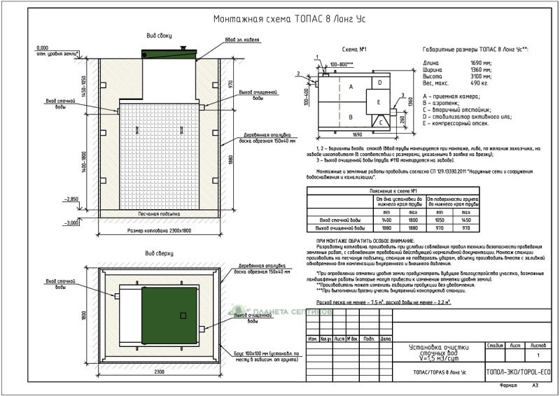 Цены на монтаж септик Септик Топас 8 Лонг УС
