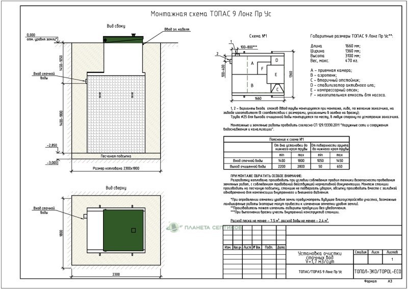 Цены на монтаж септик Септик Топас 9 Лонг пр. УС