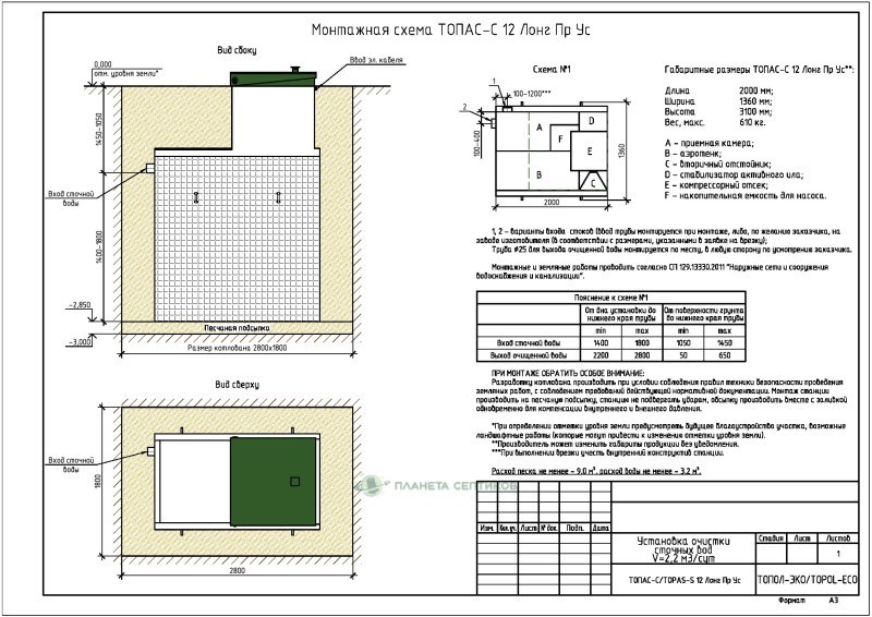 Цены на монтаж септик Септик Топас-С 12 Long Пр Ус