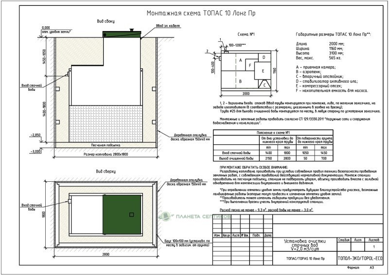 Цены на монтаж септик Септик Топас 10 Лонг (принудительный)
